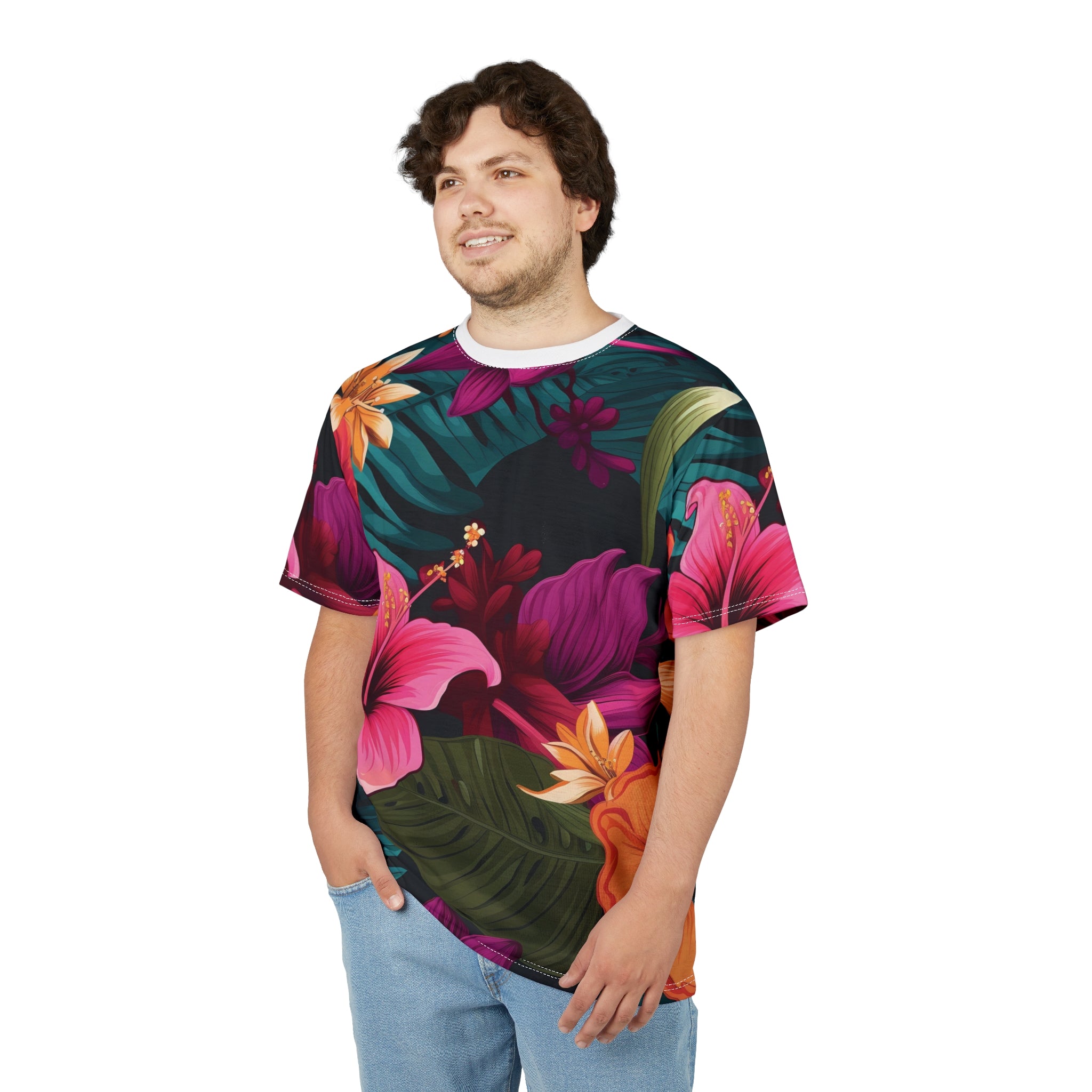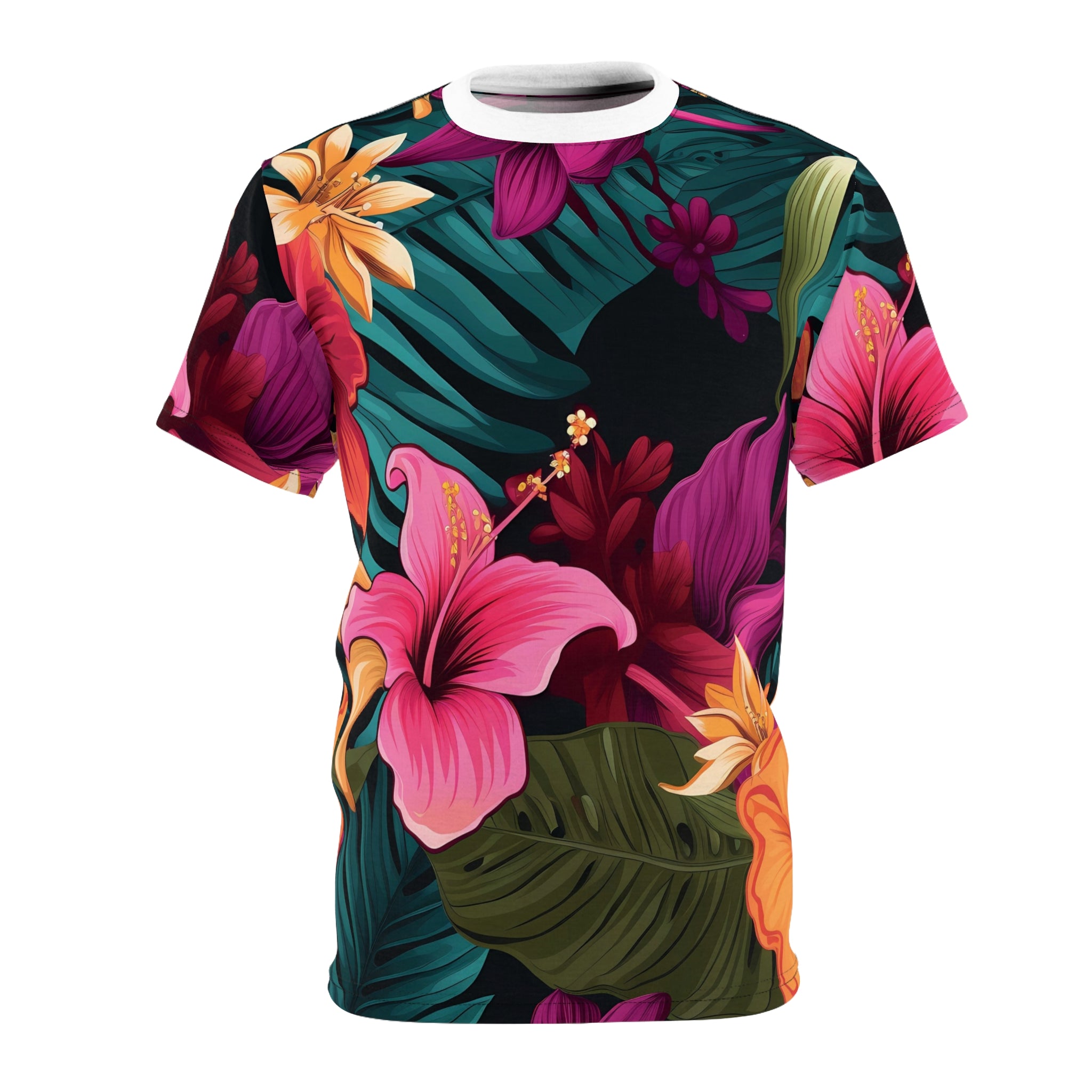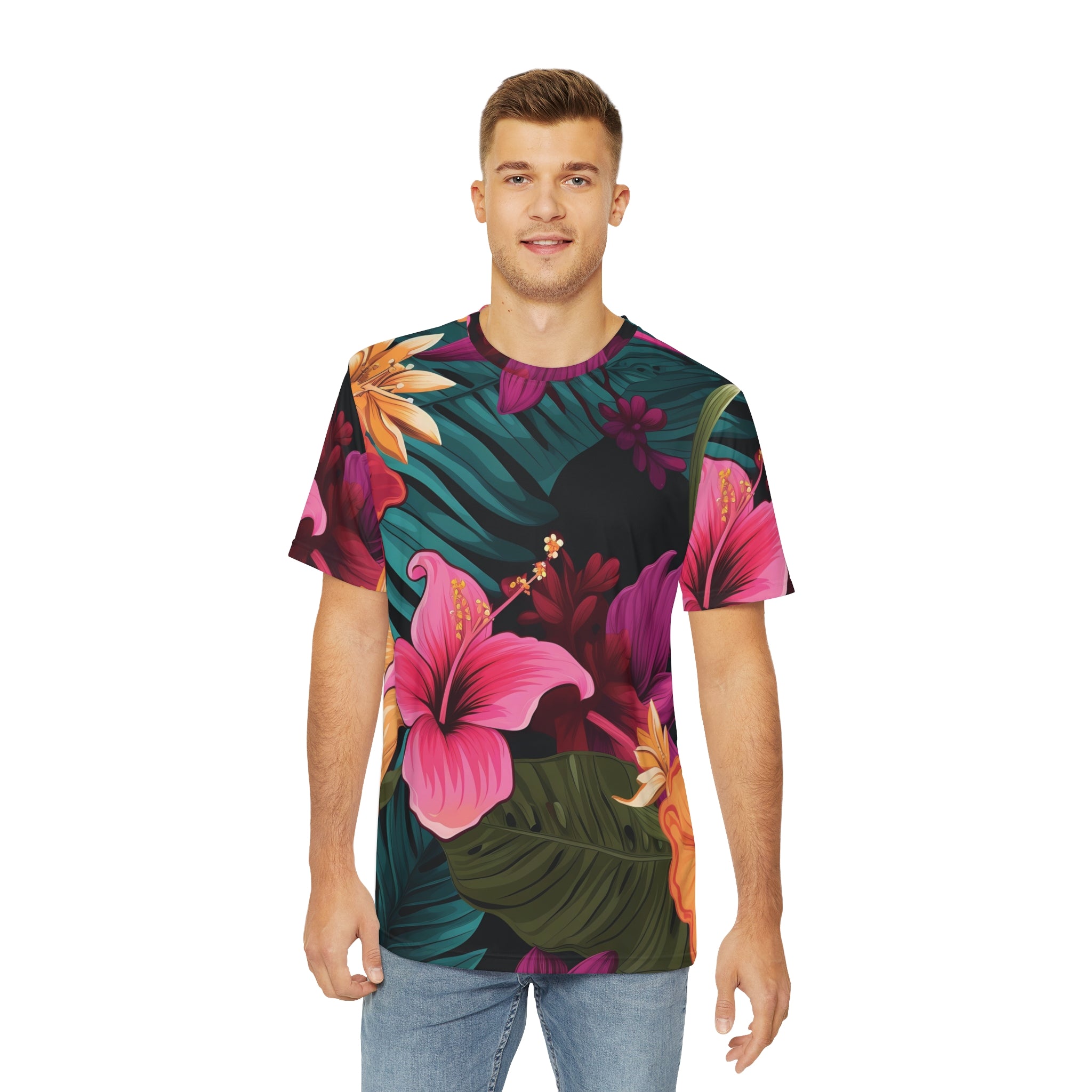 Stylish Unisex Cut & Sew Tee with Tropical Leaf Print.