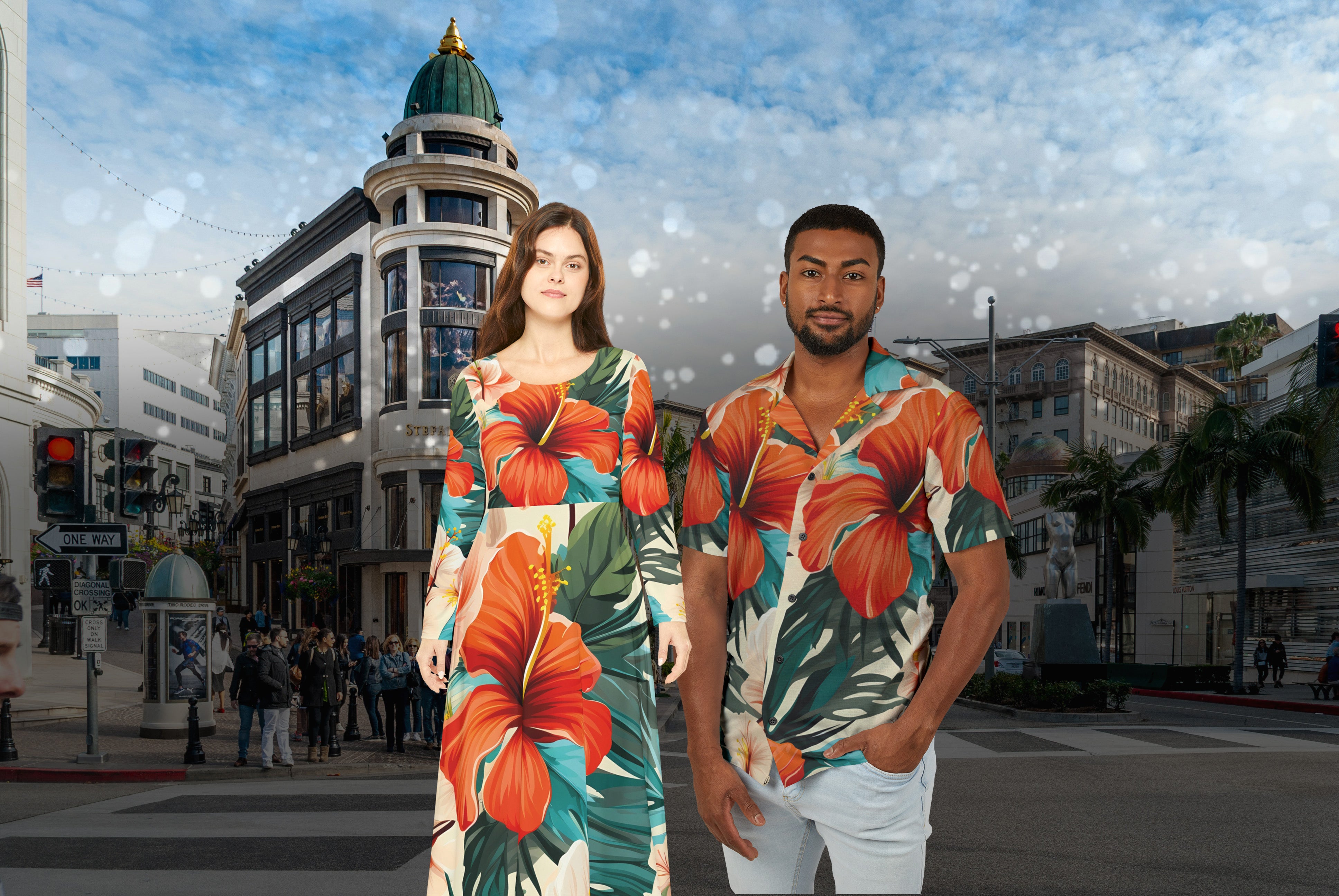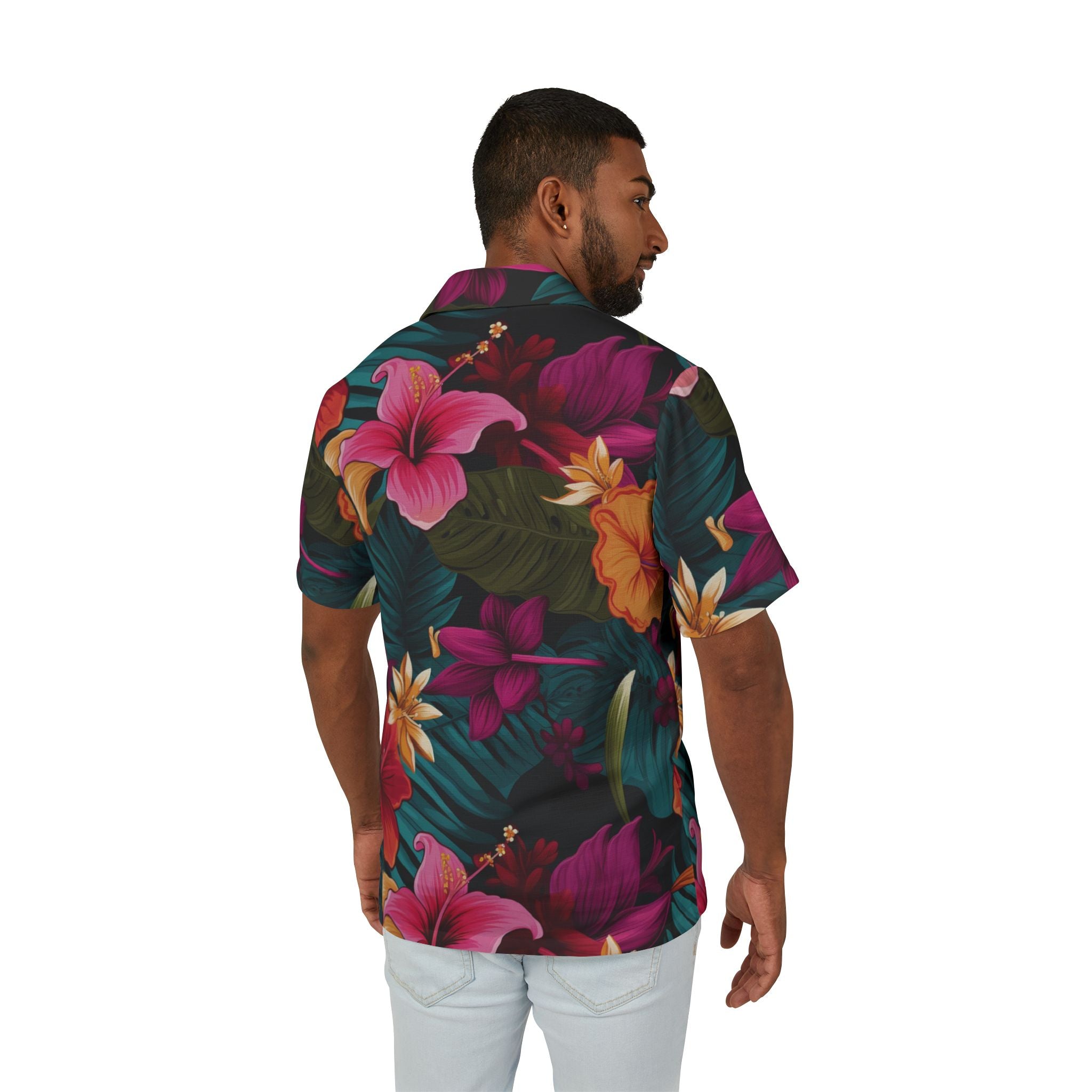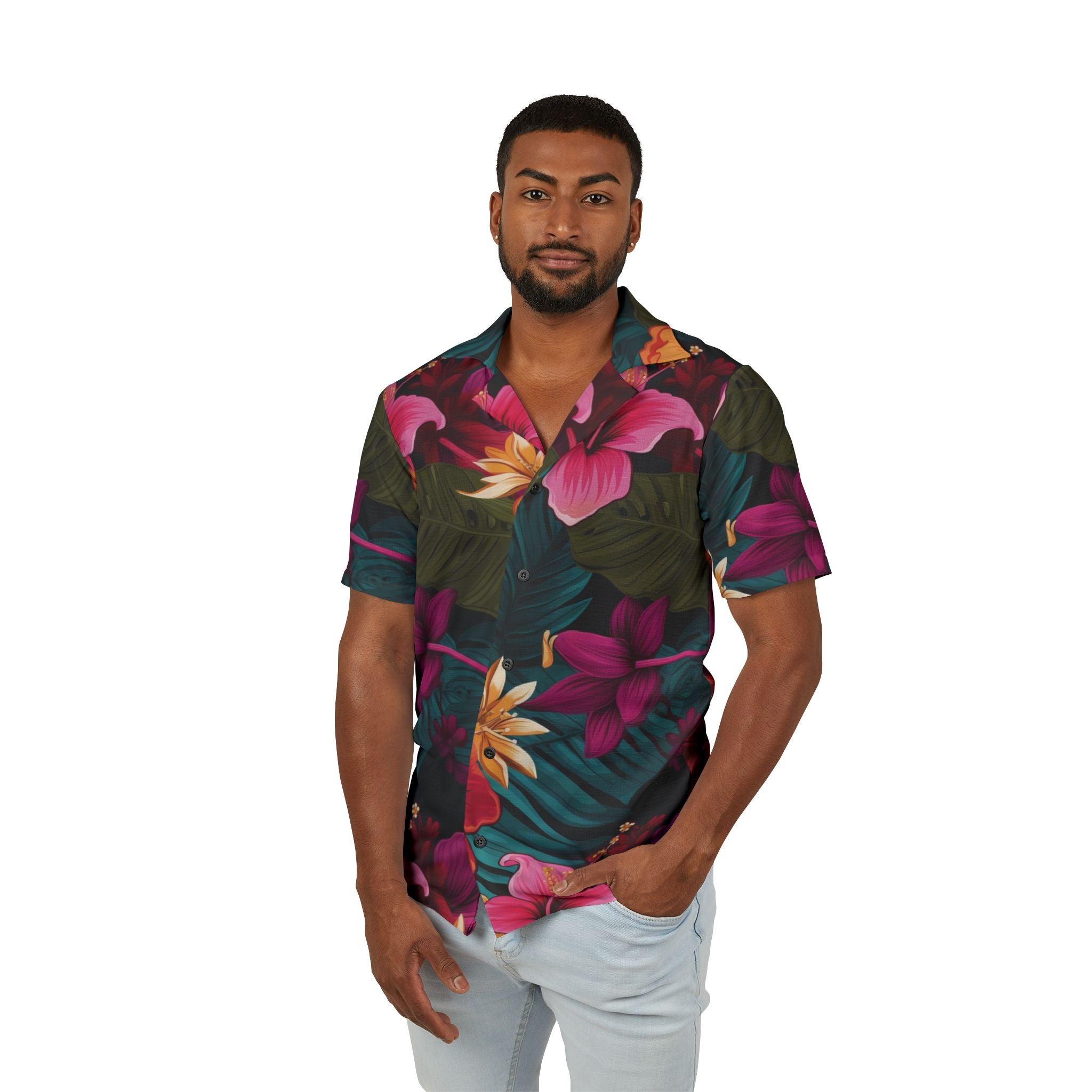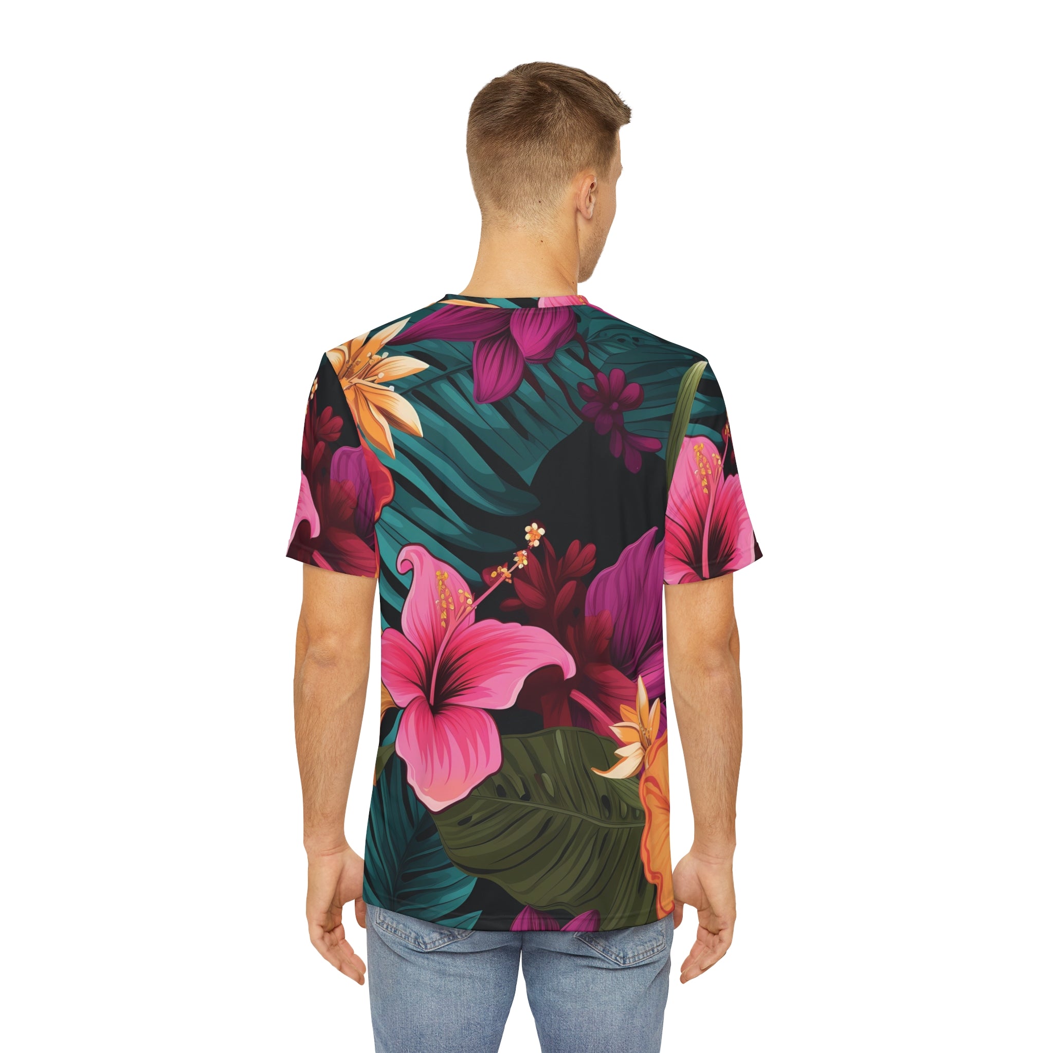 Stylish Unisex Cut & Sew Tee with Tropical Leaf Print.