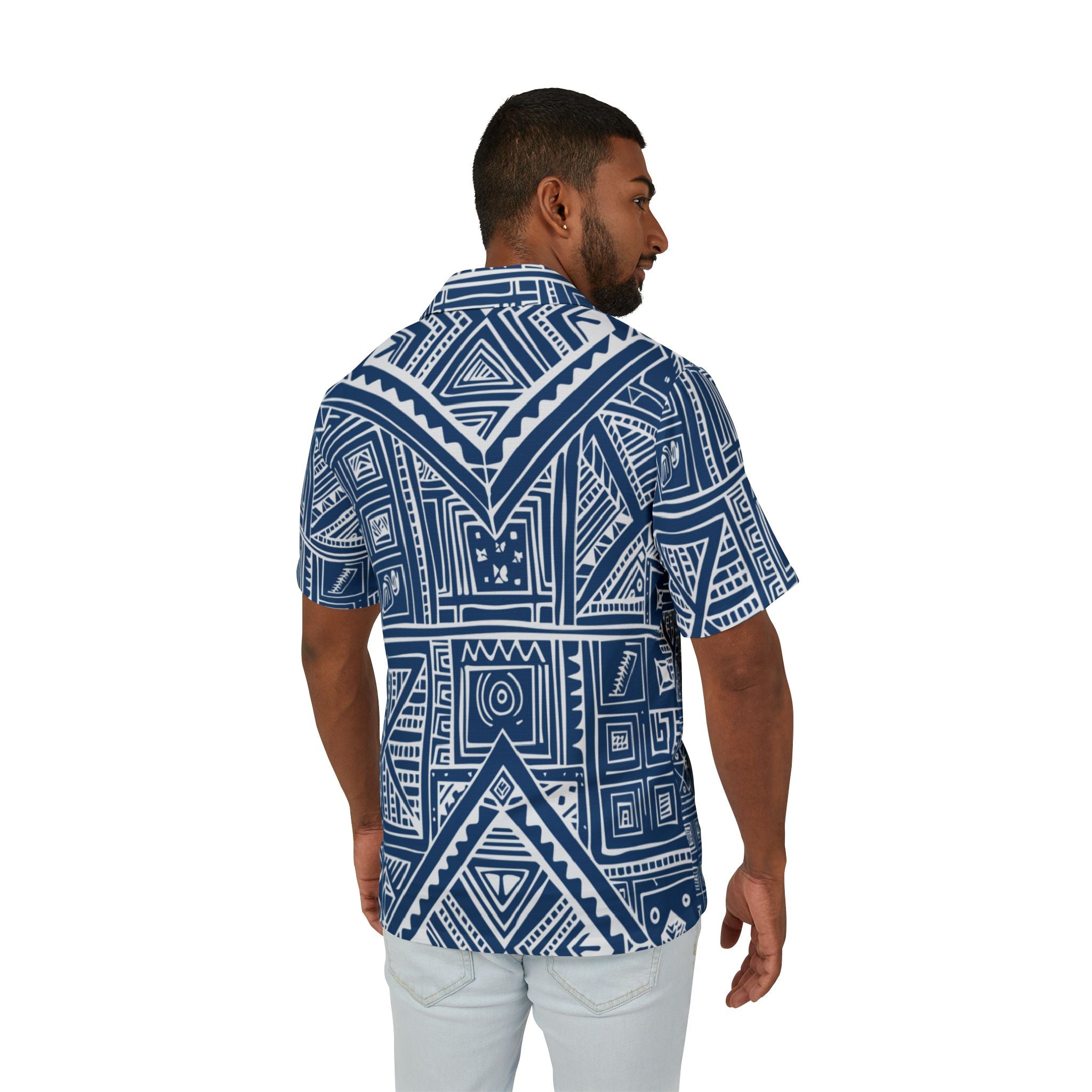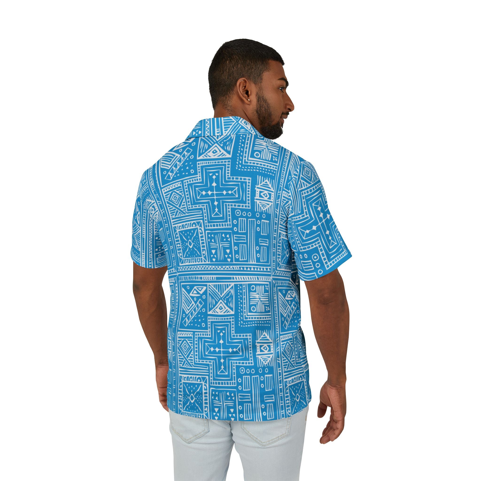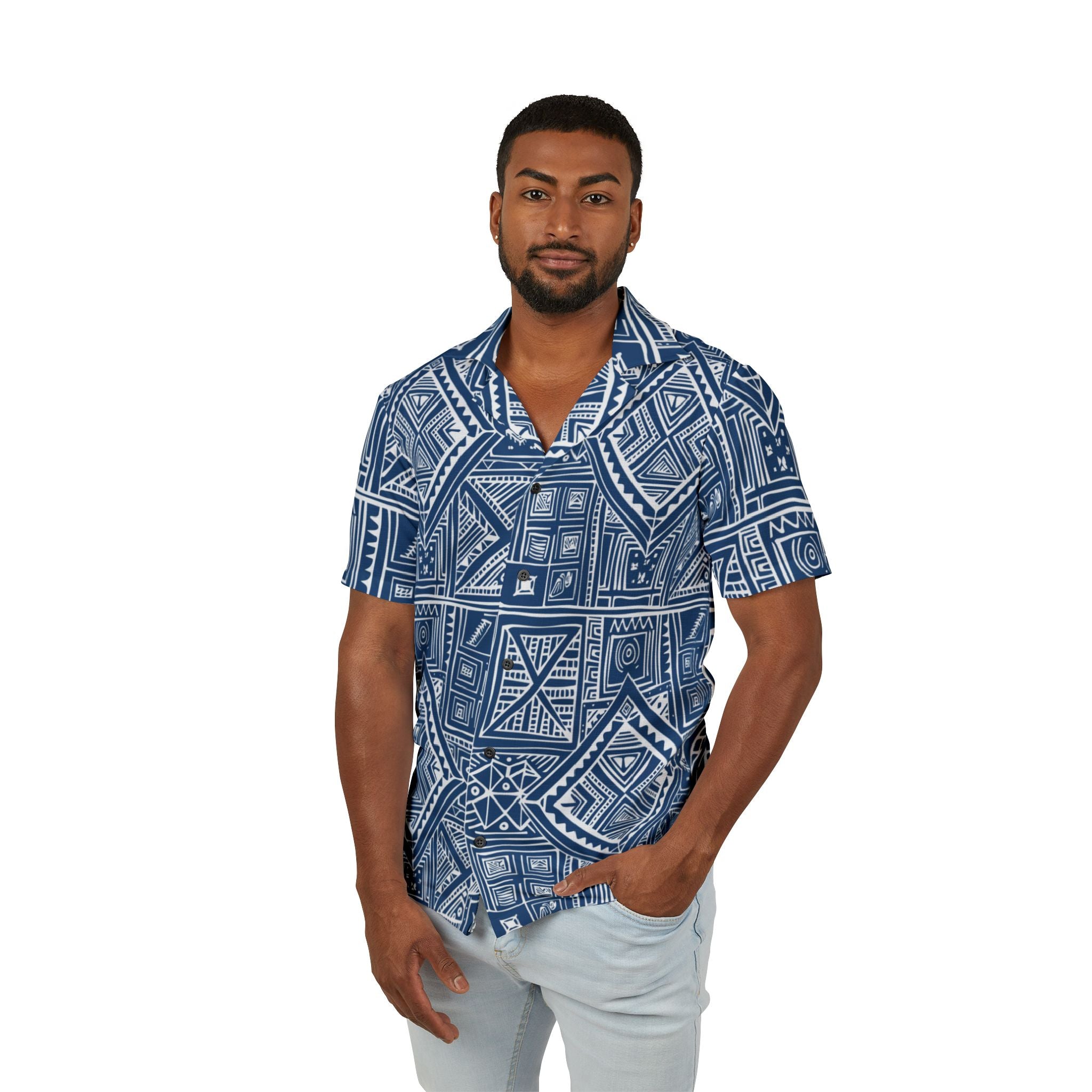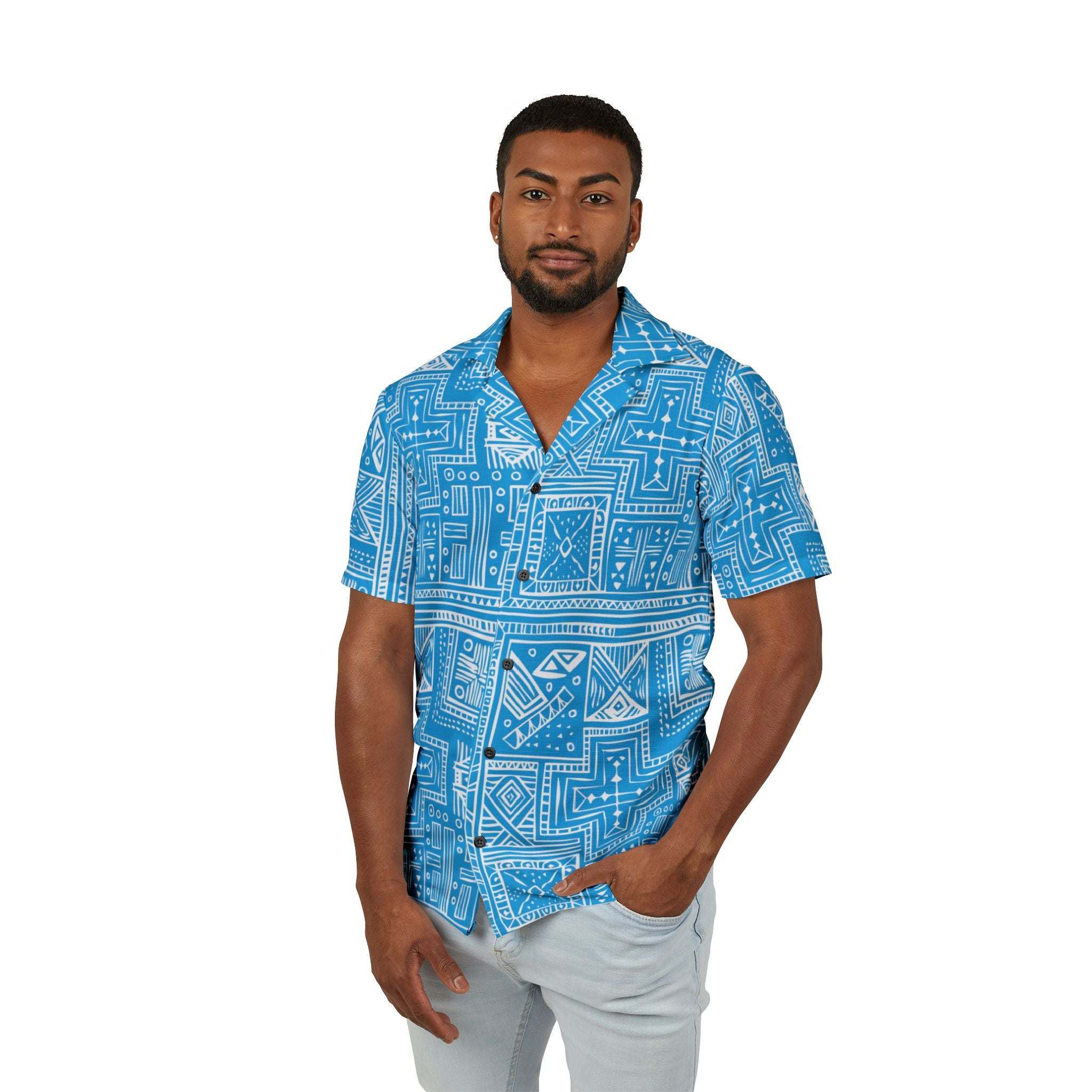 Kala Geometric Shirt Blue - Tropical Pattern for Summer Adventures