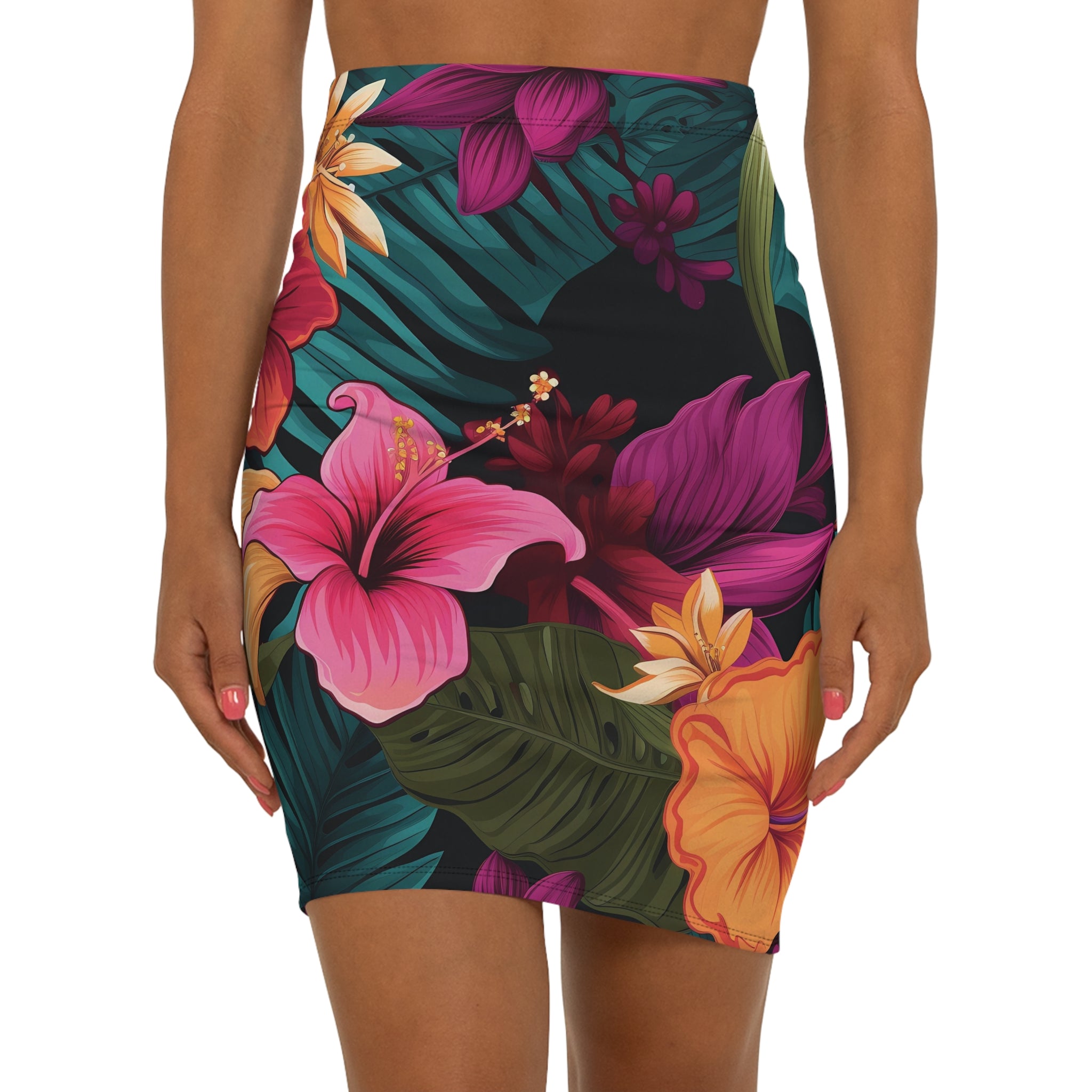 Tropical Floral Women's Mid-Waist Pencil Skirt - Perfect for Summer Events