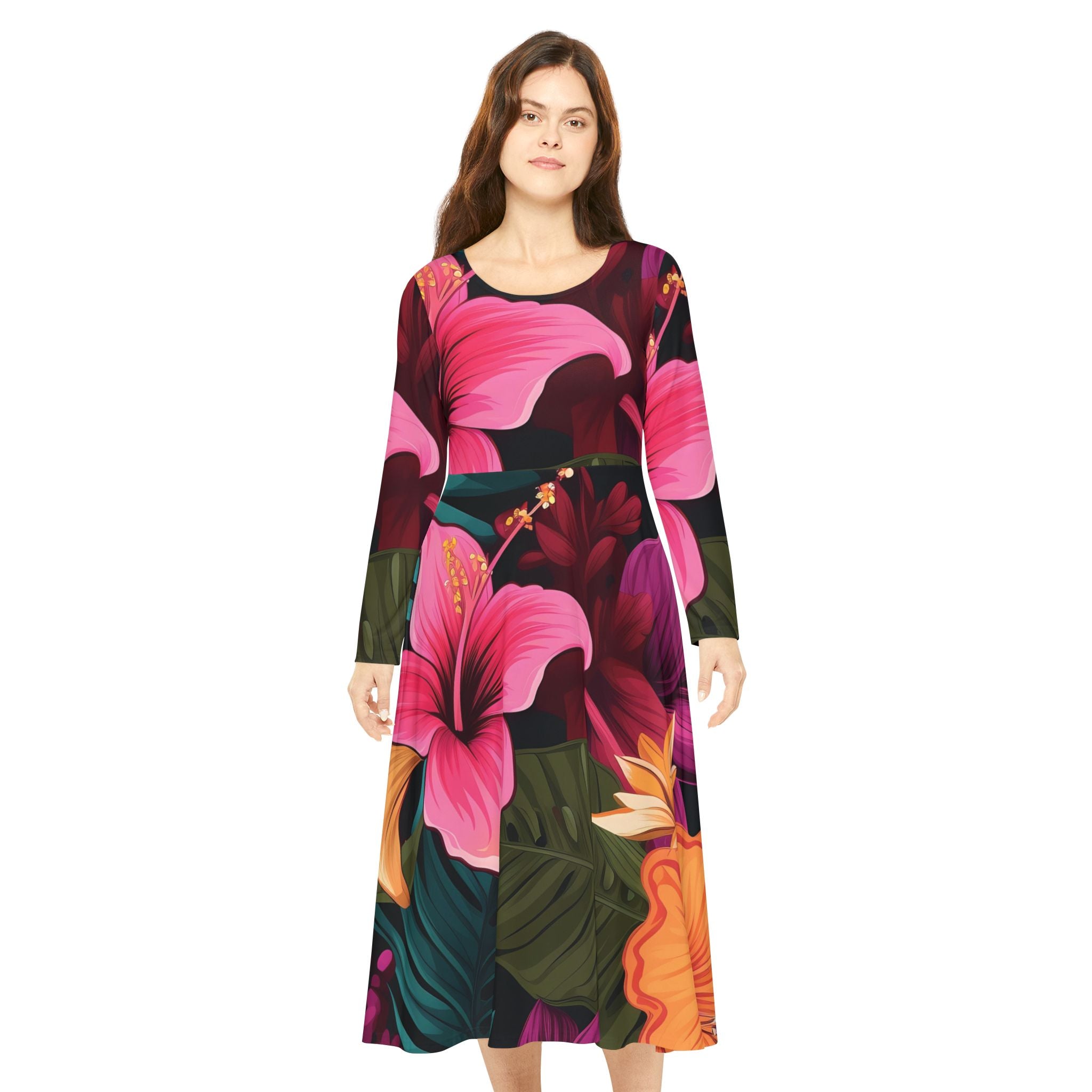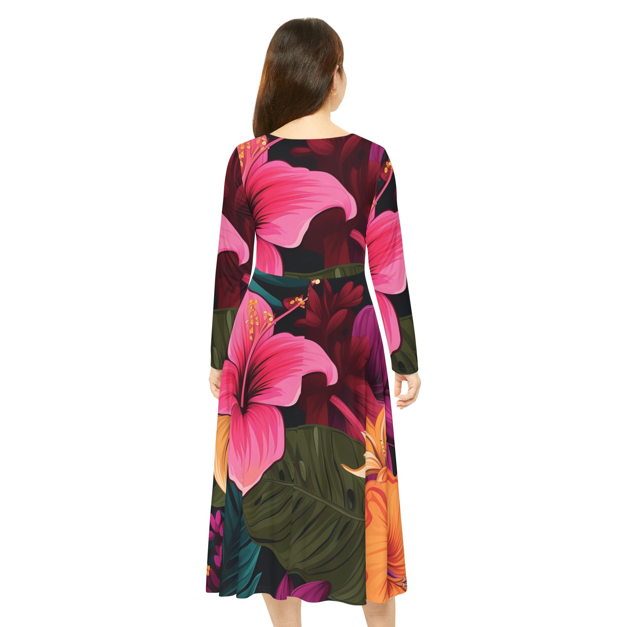 Tropical Long Sleeve Dance Dress for Women - Floral Print