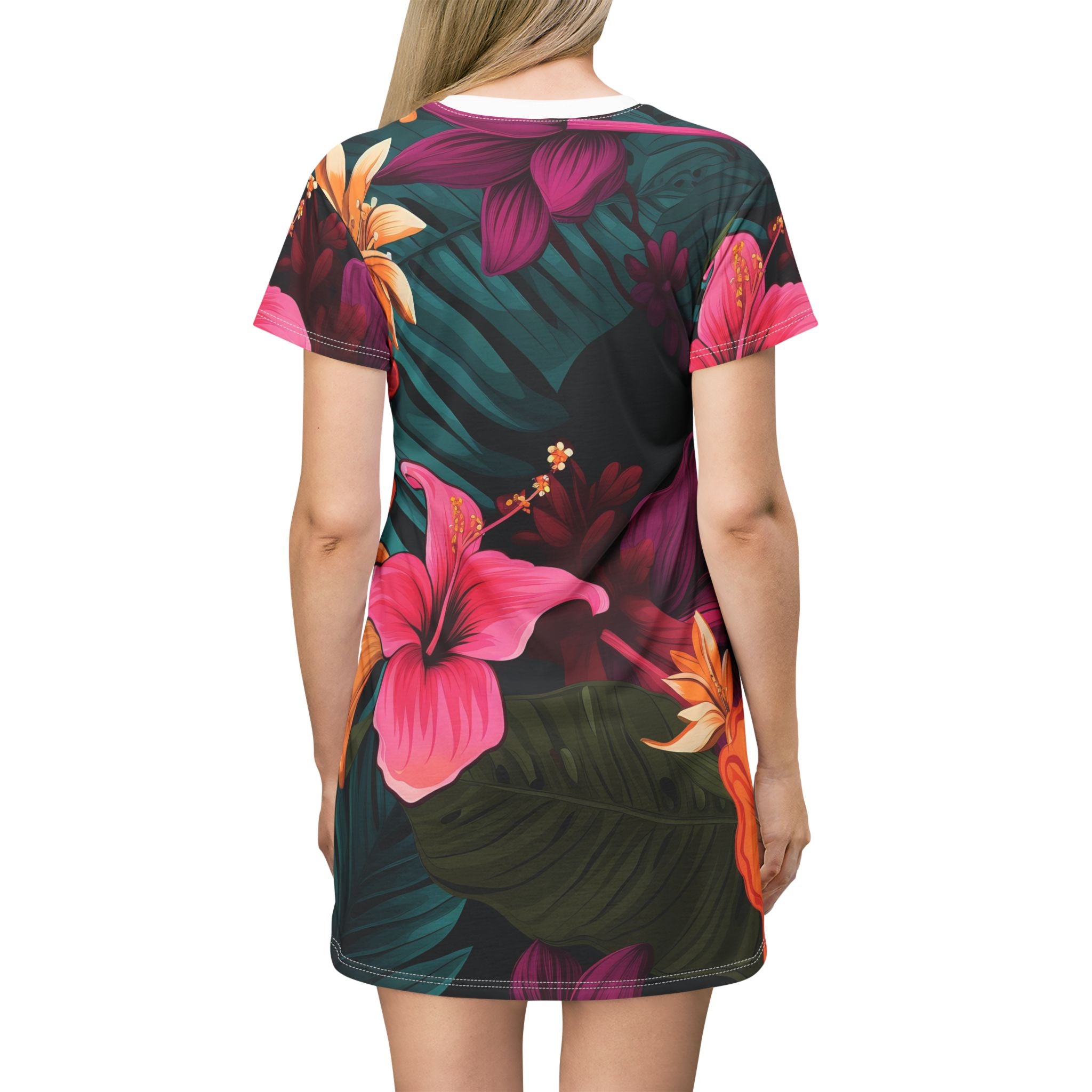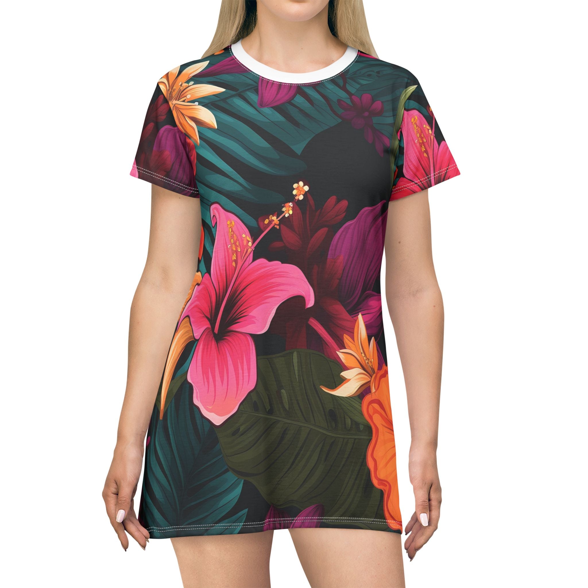 Tropical Floral T-Shirt Dress - Casual Summer Style