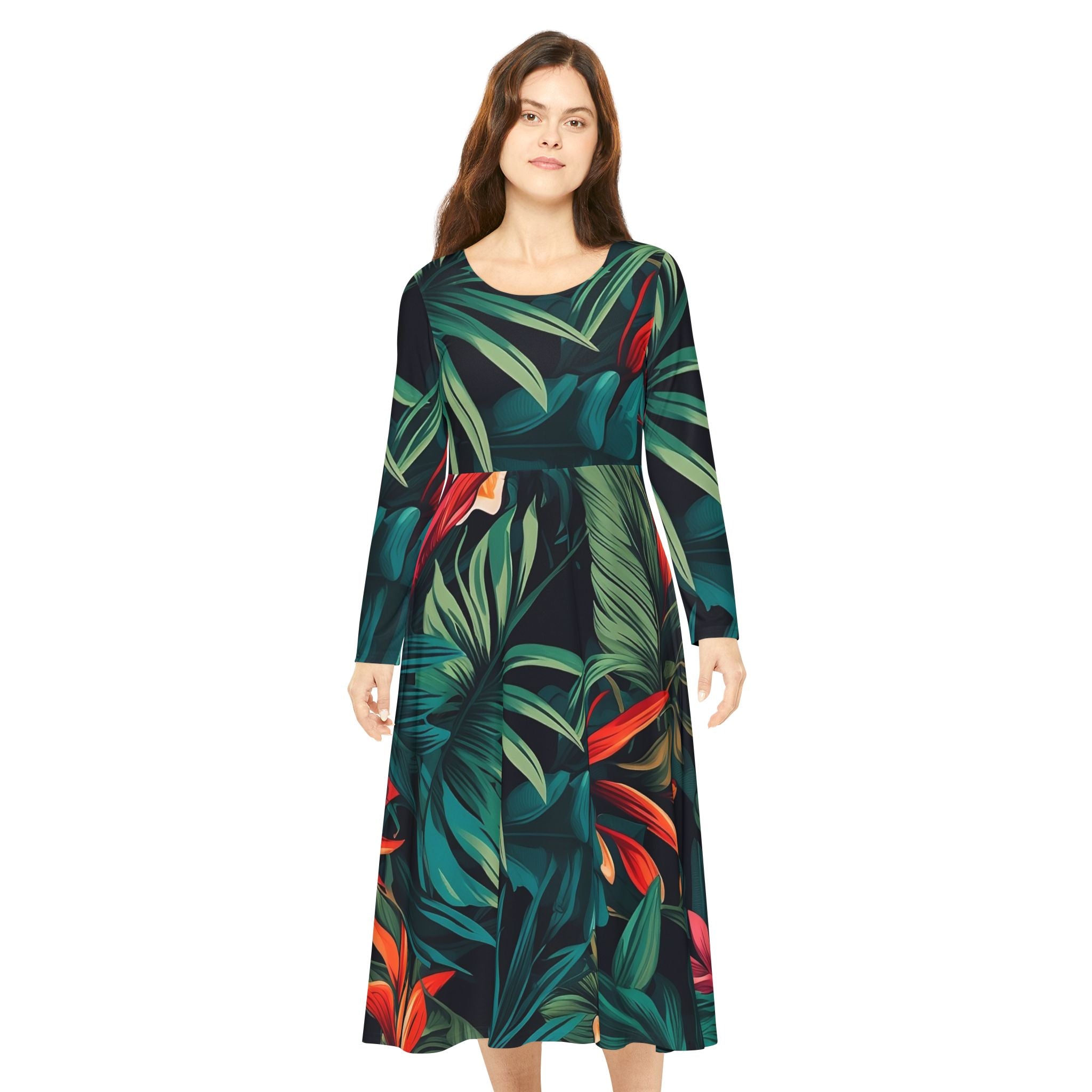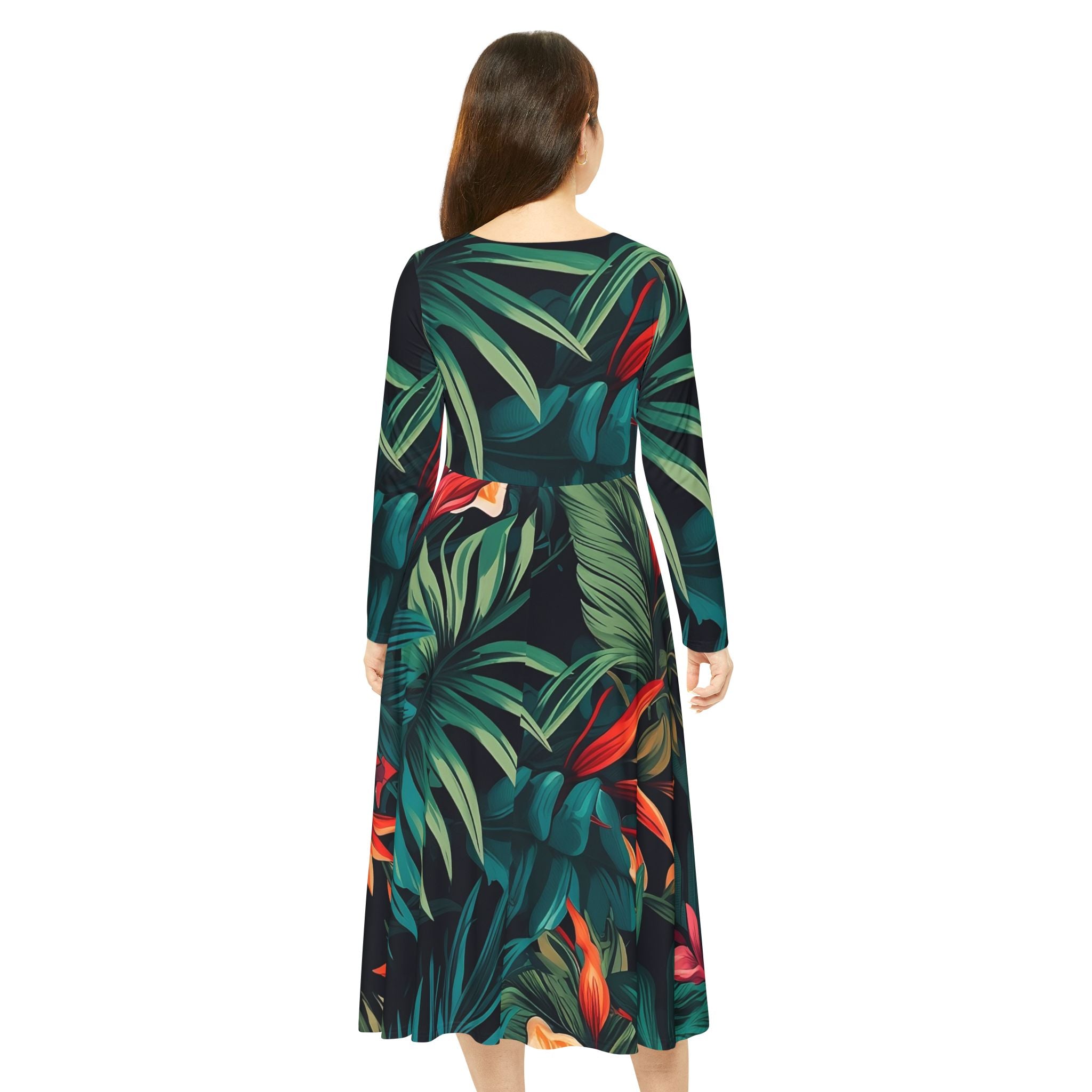 Tropical Floral Long Sleeve Dance Dress for Women - Perfect for Parties and Holidays