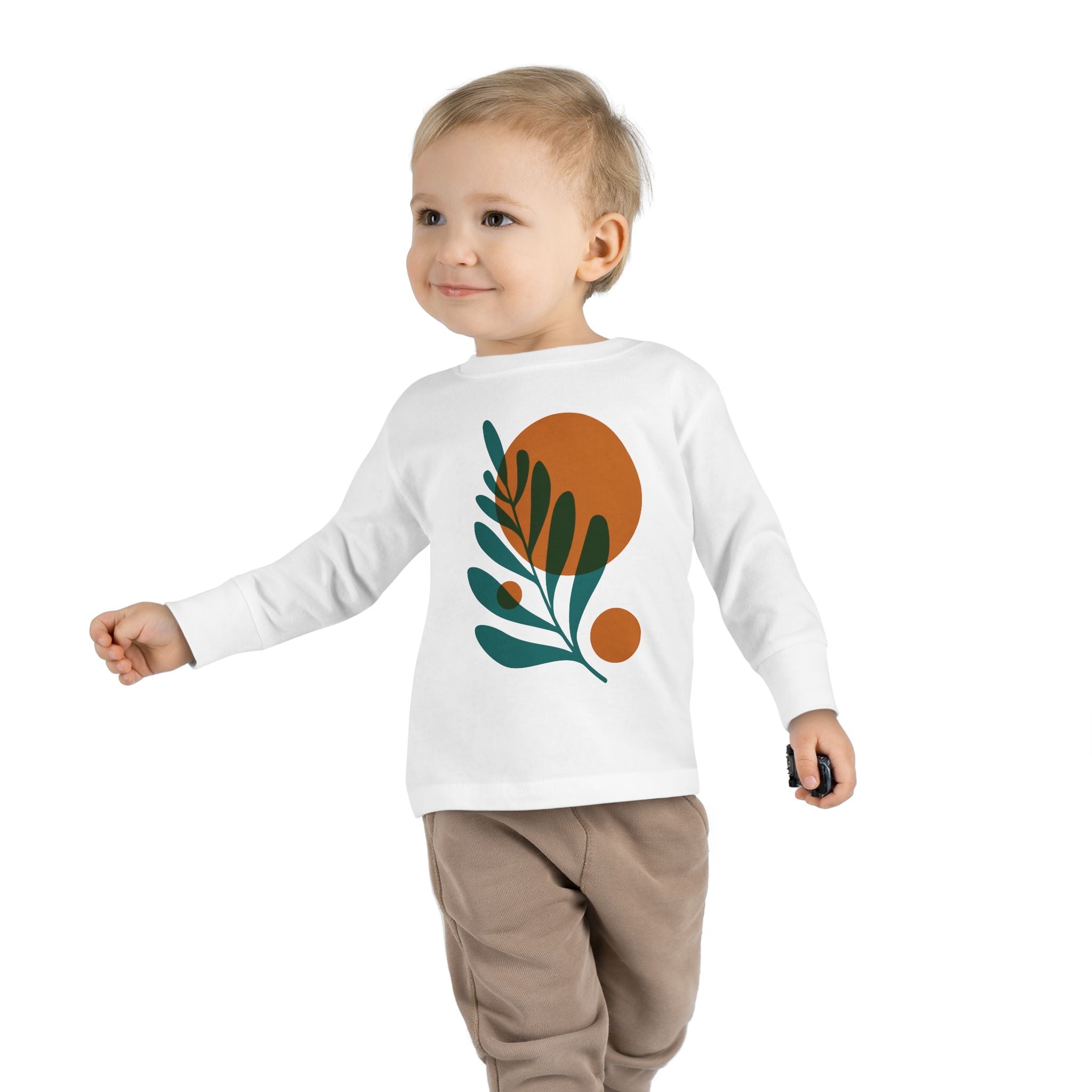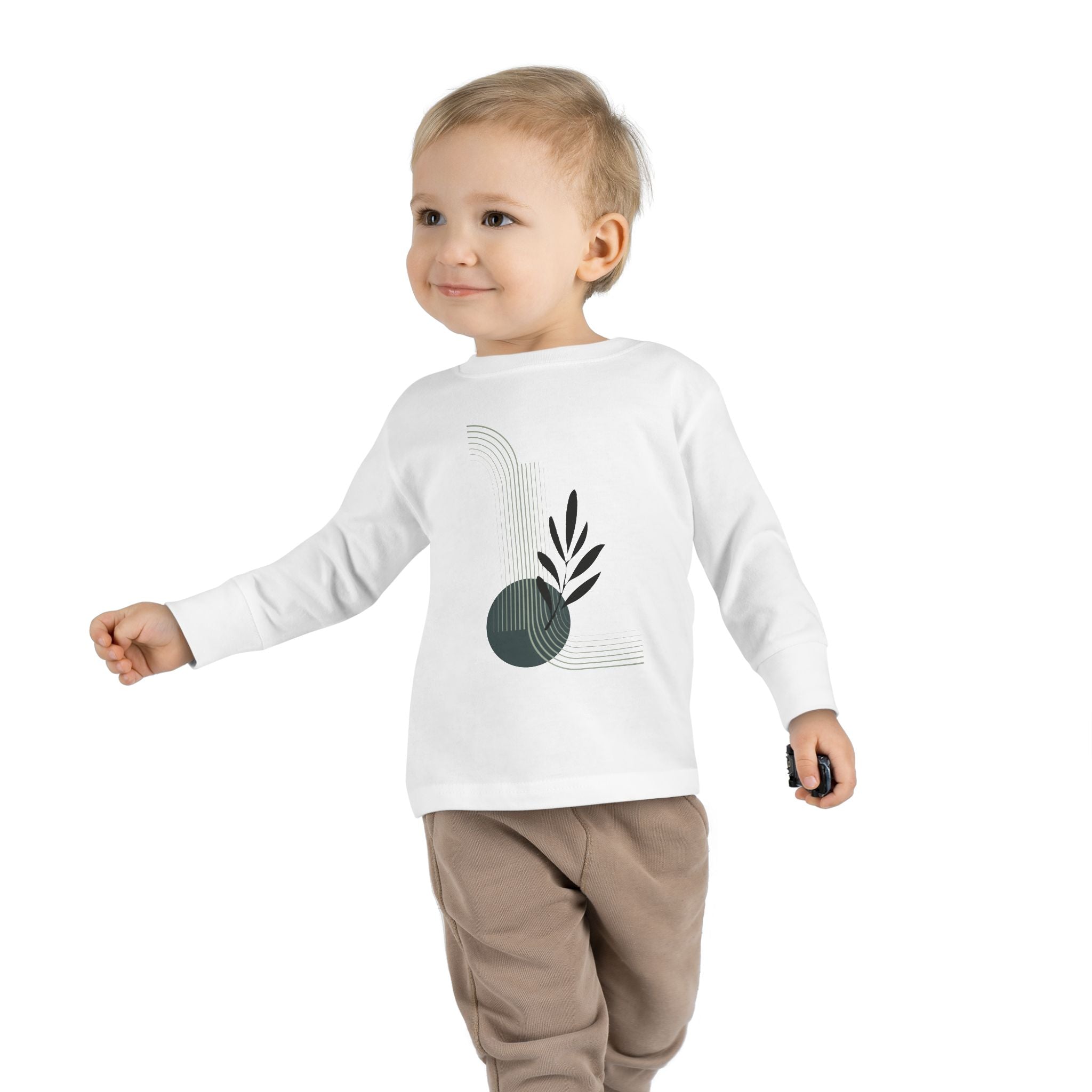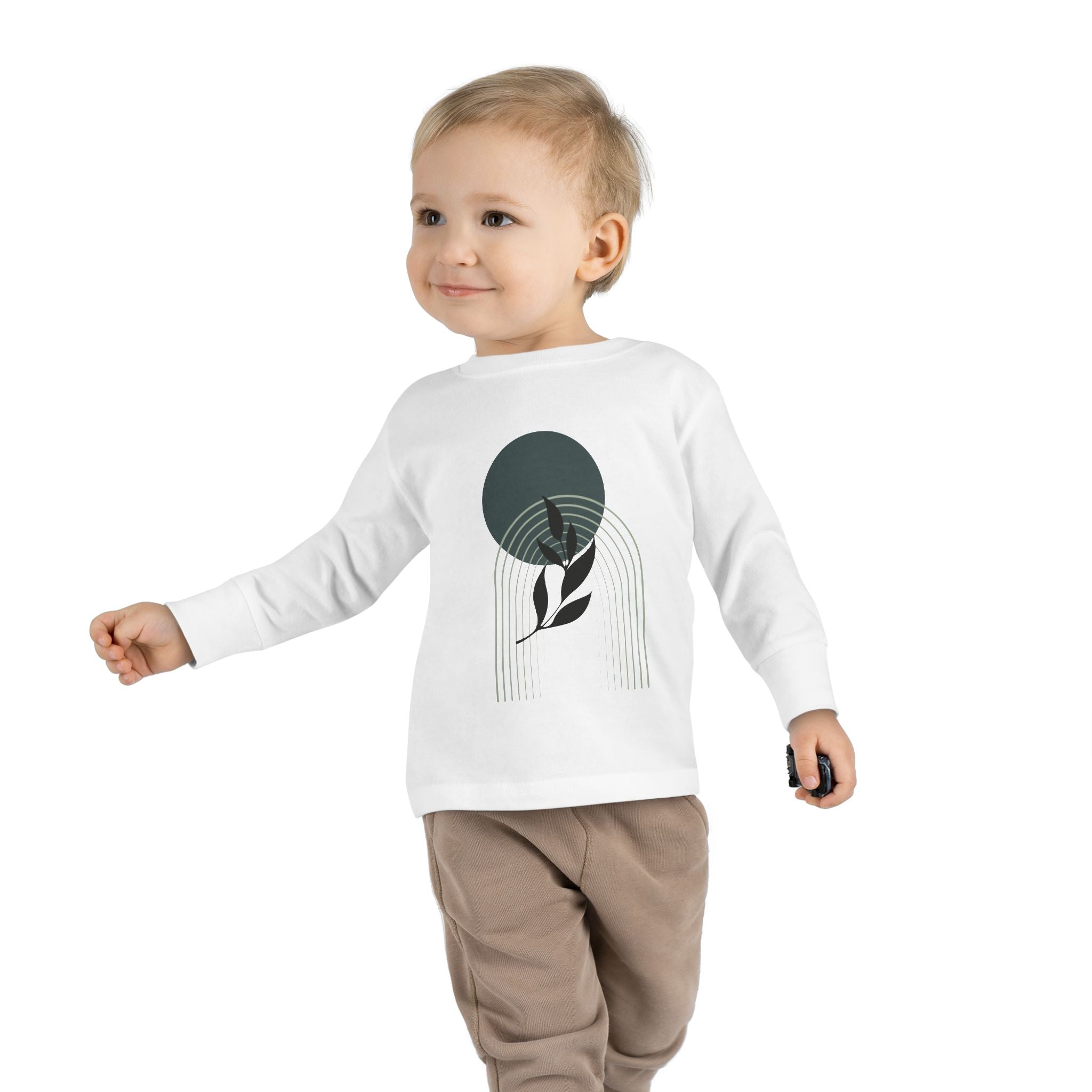 Toddler Long Sleeve Tee - Minimalist Design with Leaf & Circle