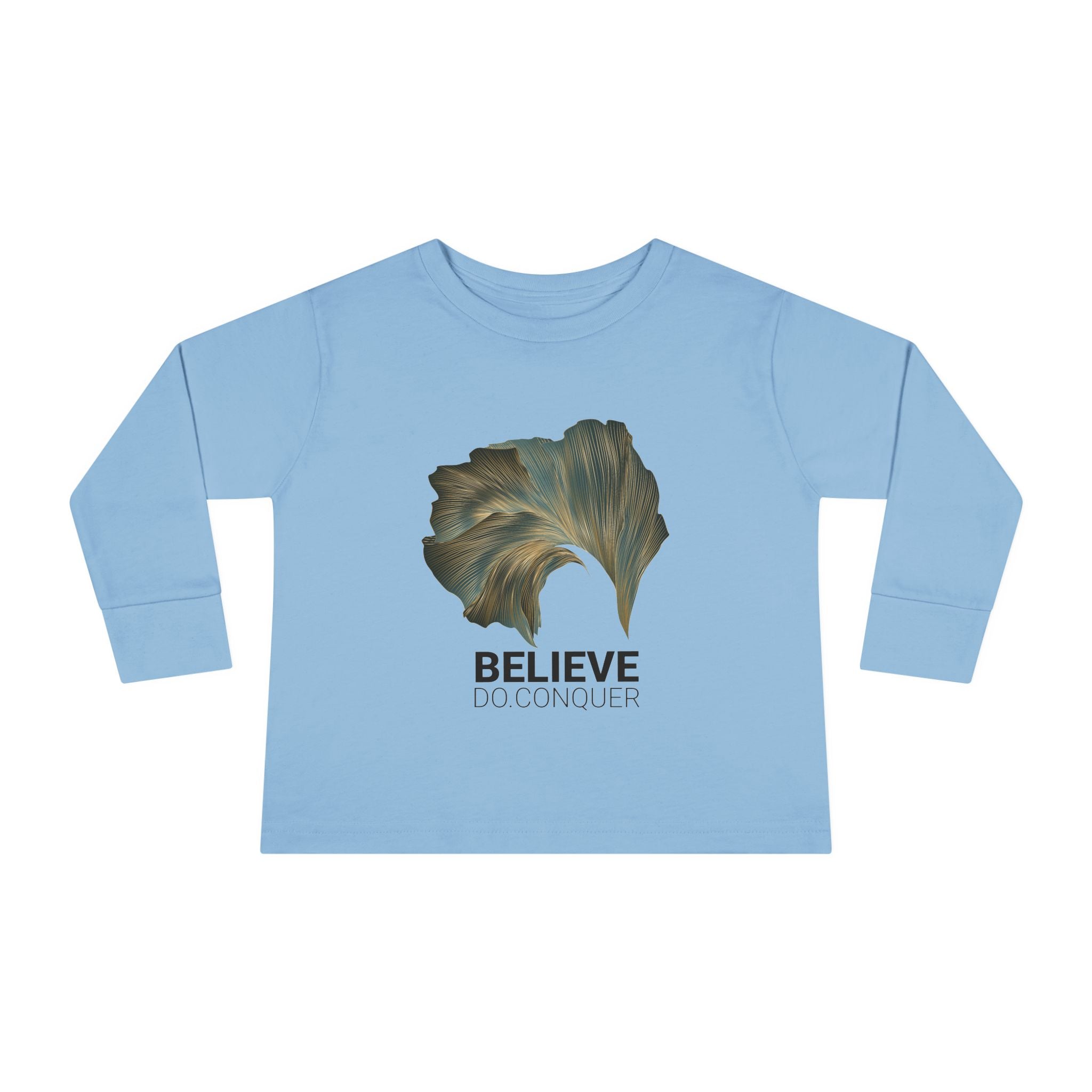 Inspirational Toddler Long Sleeve Tee - "Believe Do Conquer"