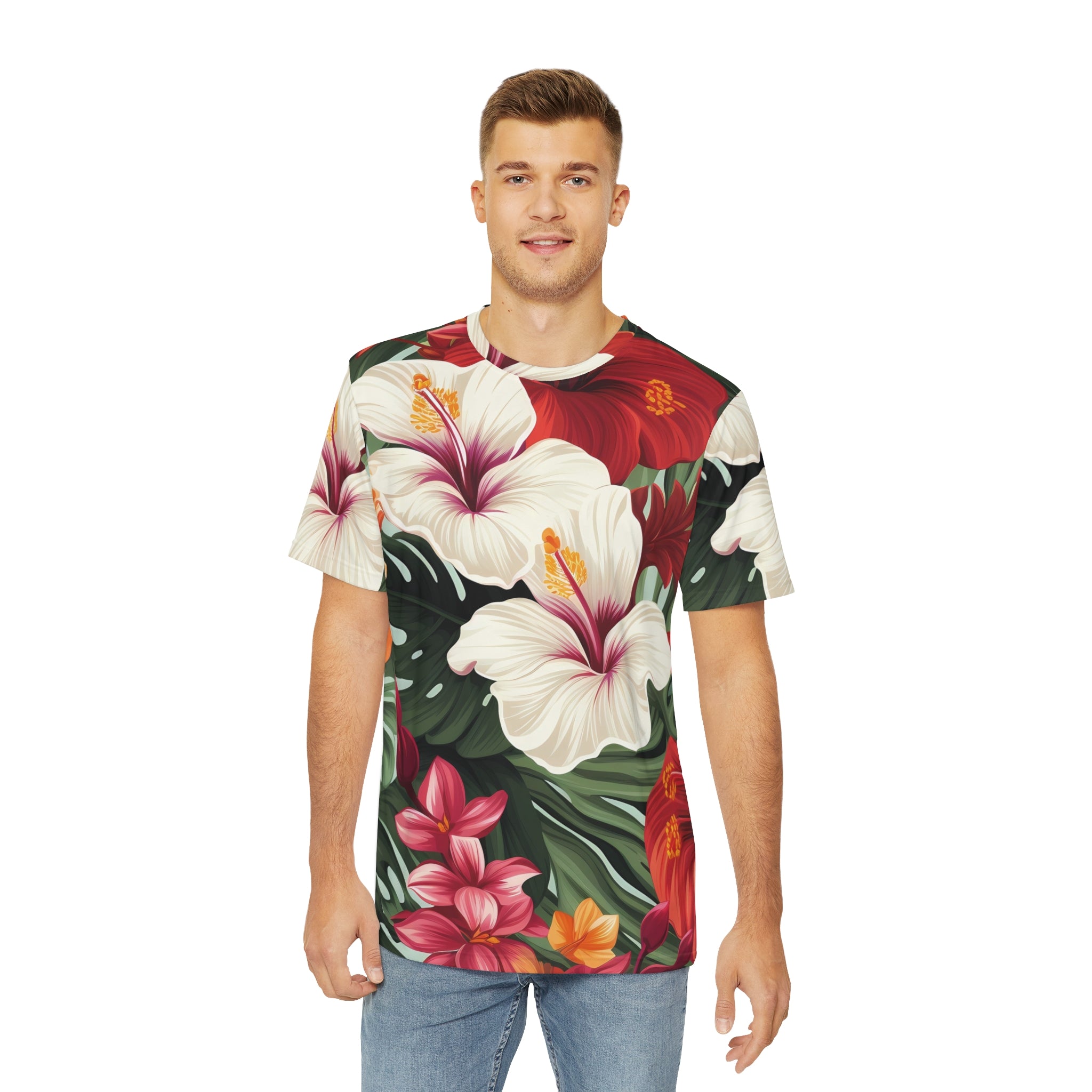 Tropical Floral Men's Polyester Tee - Vibrant, Stylish Summer Shirt