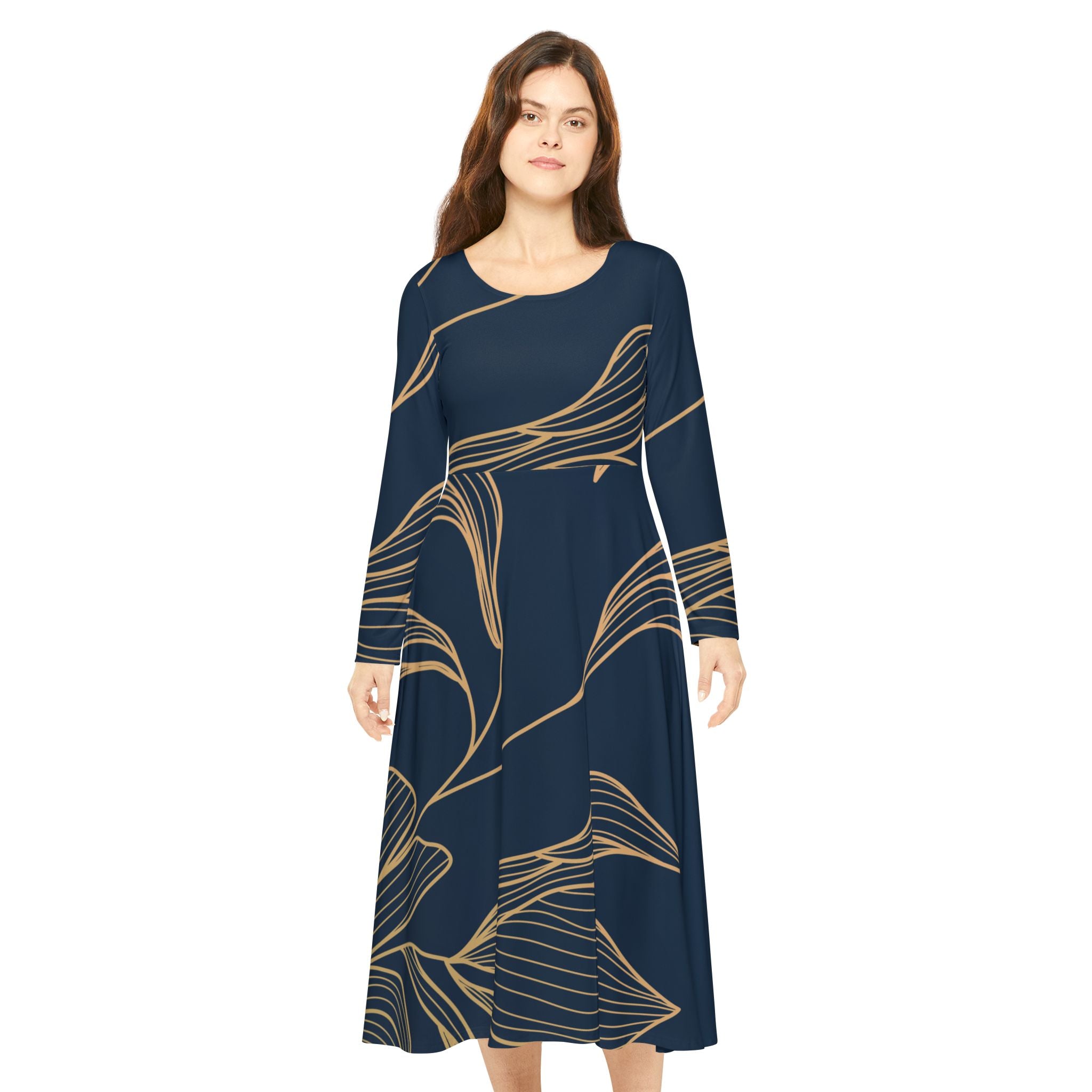 Elegant Long Sleeve Dance Dress with Floral Design