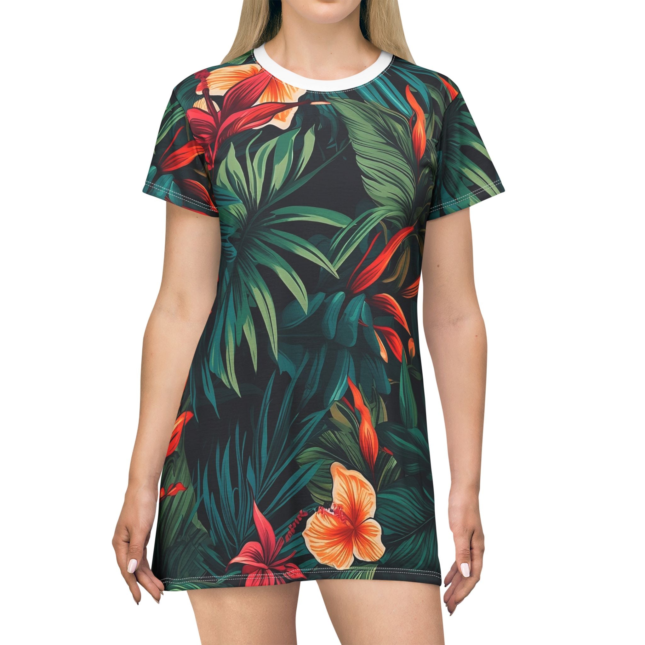Tropical Floral T-Shirt Dress - Casual Summer Outfit