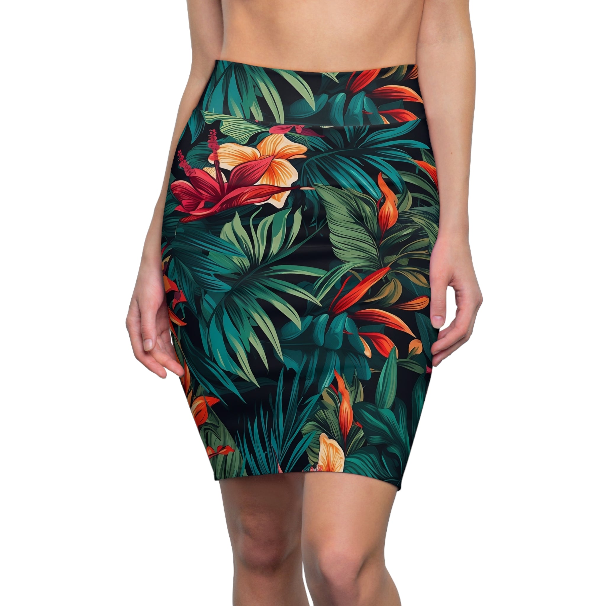 Tropical Floral Women's Pencil Skirt – Perfect for Summer Outings and Celebrations