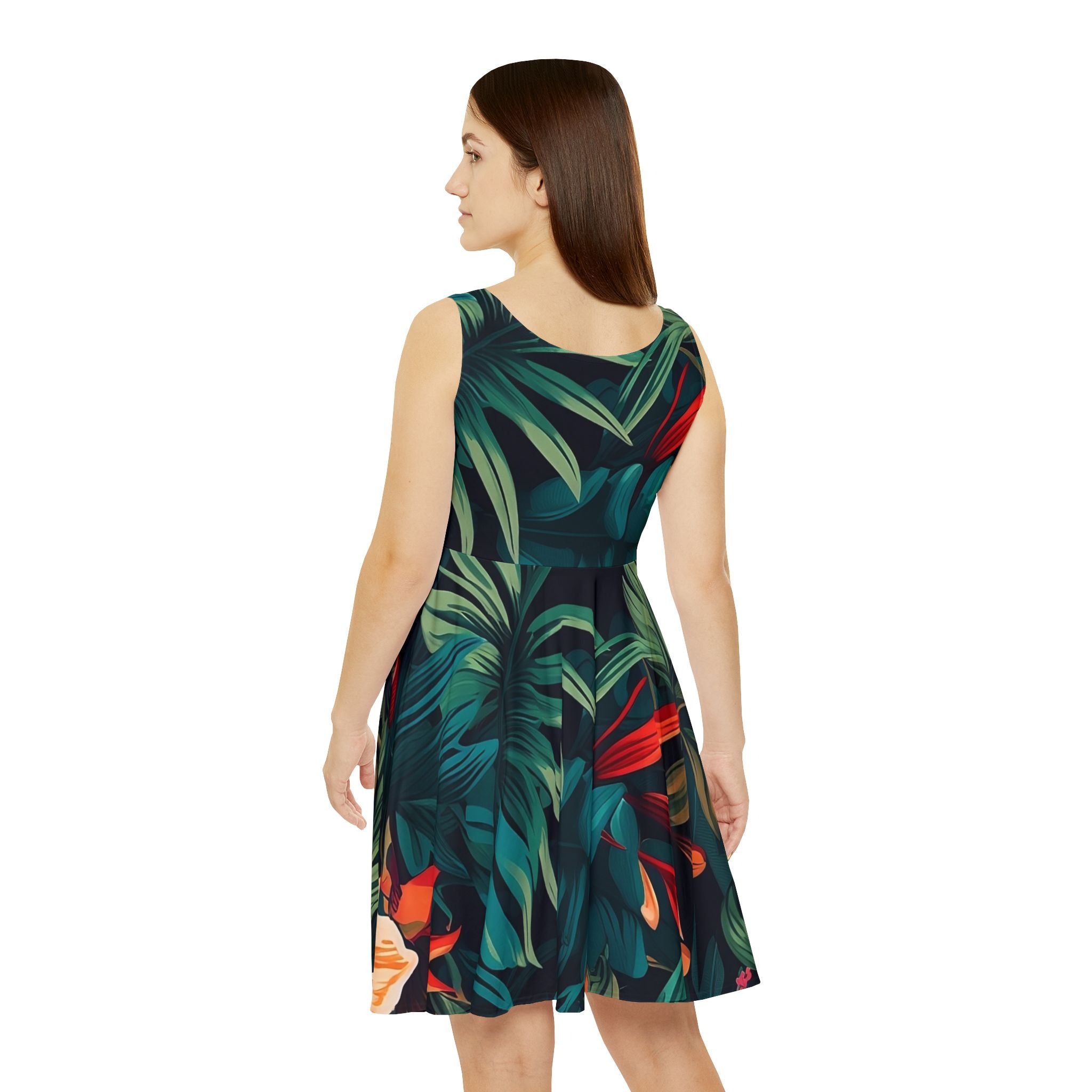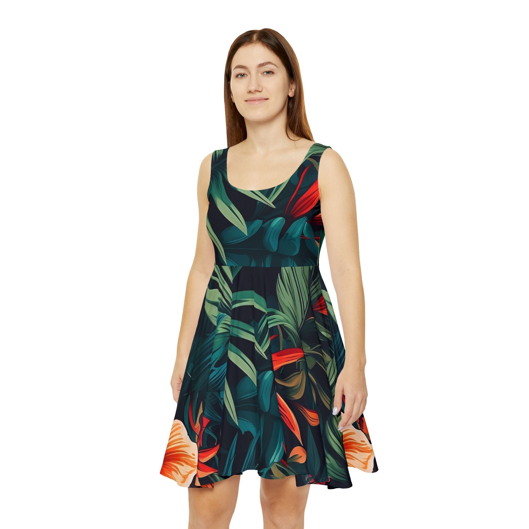 Tropical Women's Skater Dress - Vibrant Floral Print for Summer Style