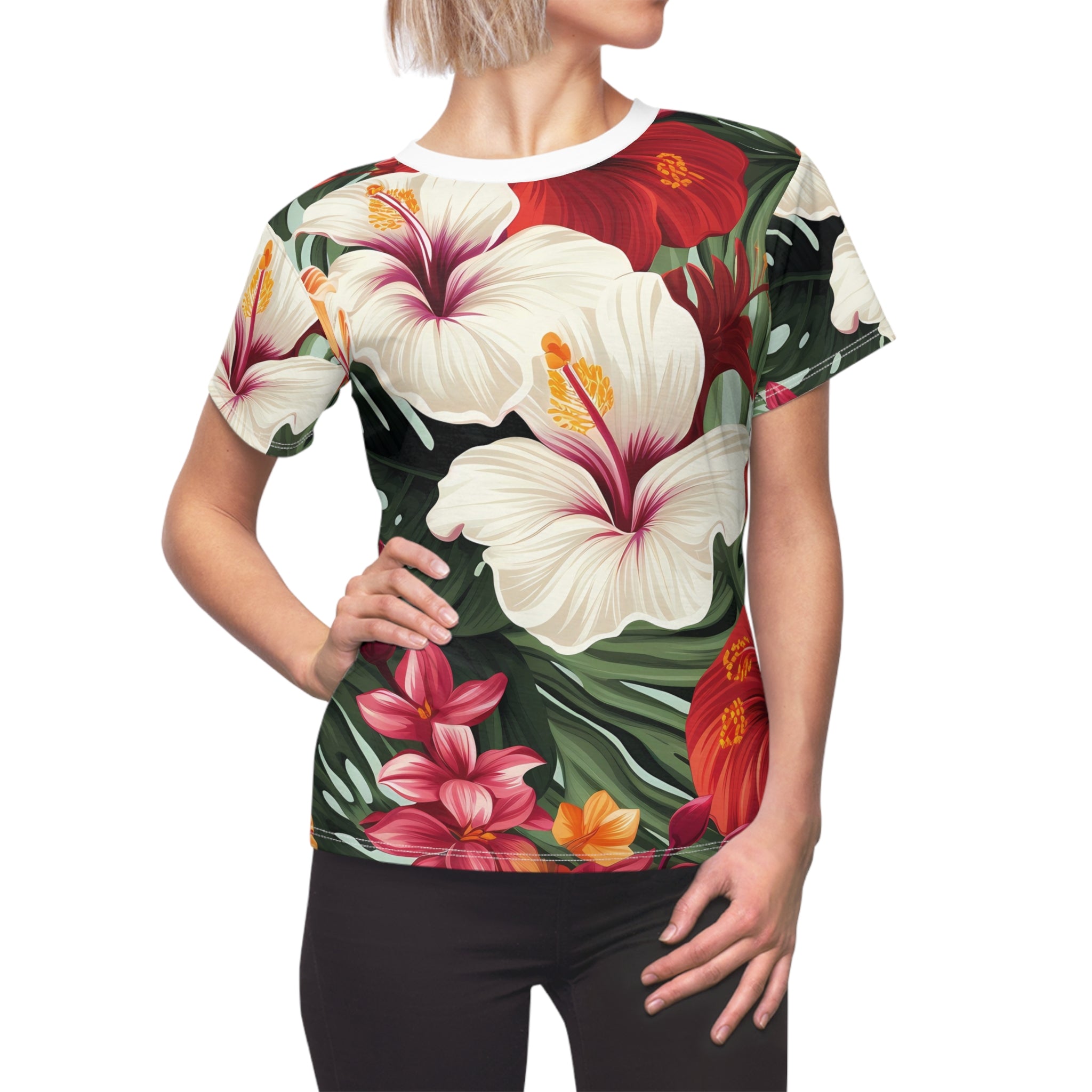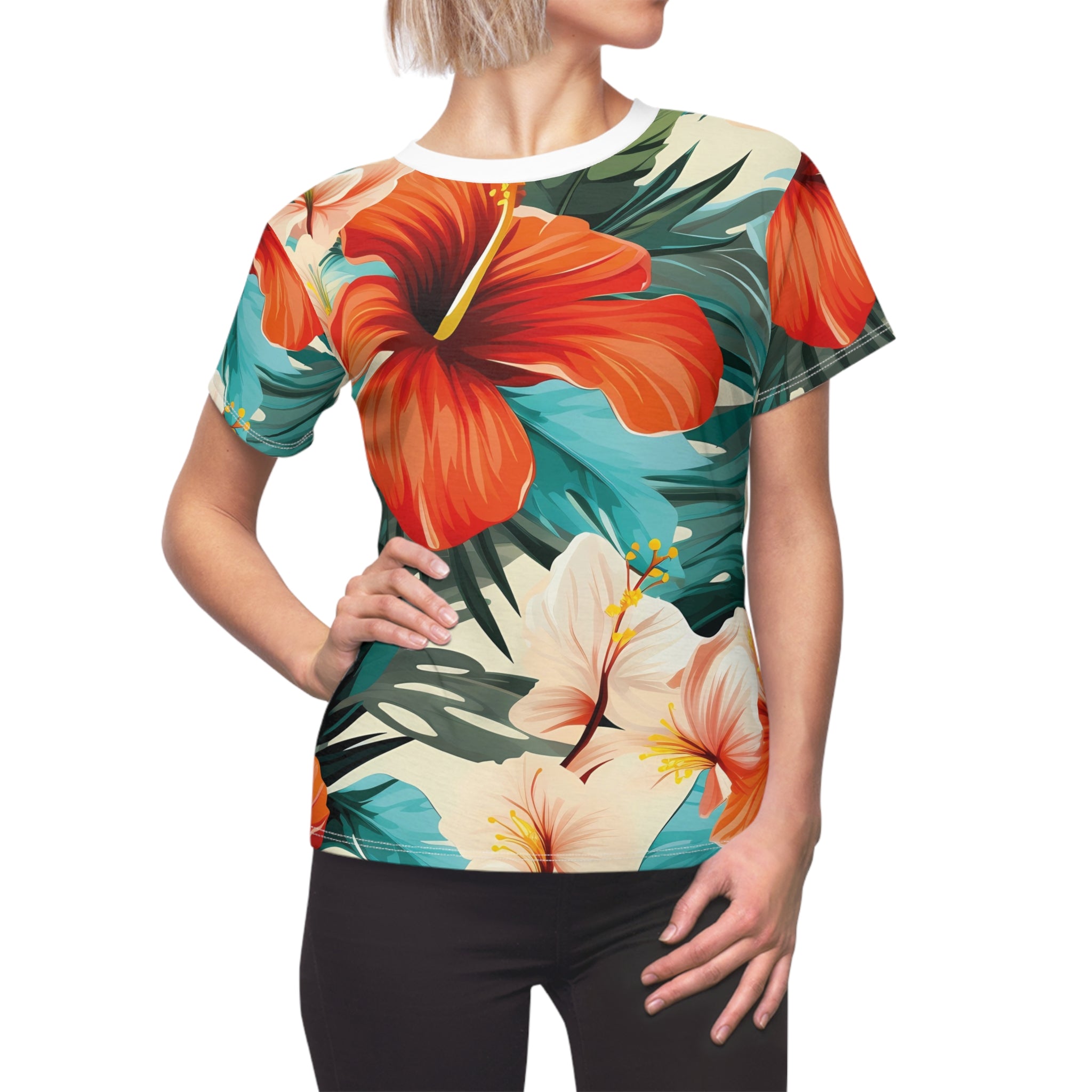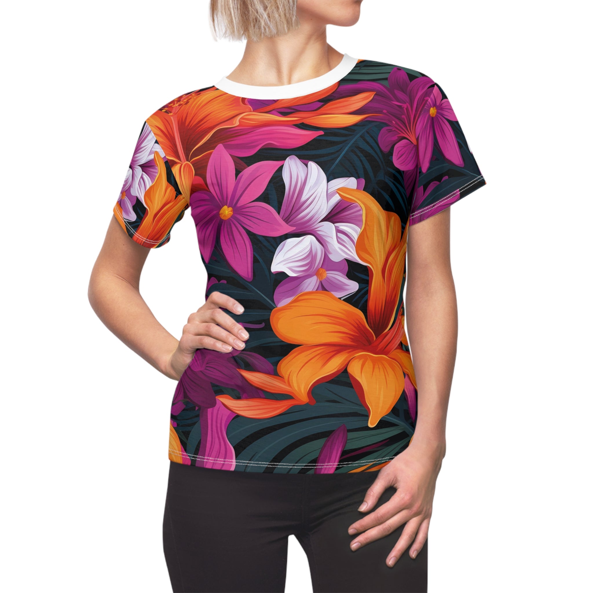 Tropical Floral Women's Tee - Vibrant Cut & Sew Shirt for Summer